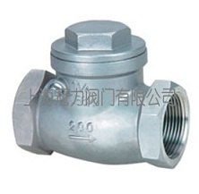 其中内螺纹止回阀,蝶式止回阀就属于这种类型的阀门,它包括旋启式止回阀和升降式止回阀。旋启式止回阀有一介铰链机构,还有一个像门一样的阀瓣自由地靠在倾斜的阀座表面上。本阀门在使用过程中,介质按图示箭头方向流动。